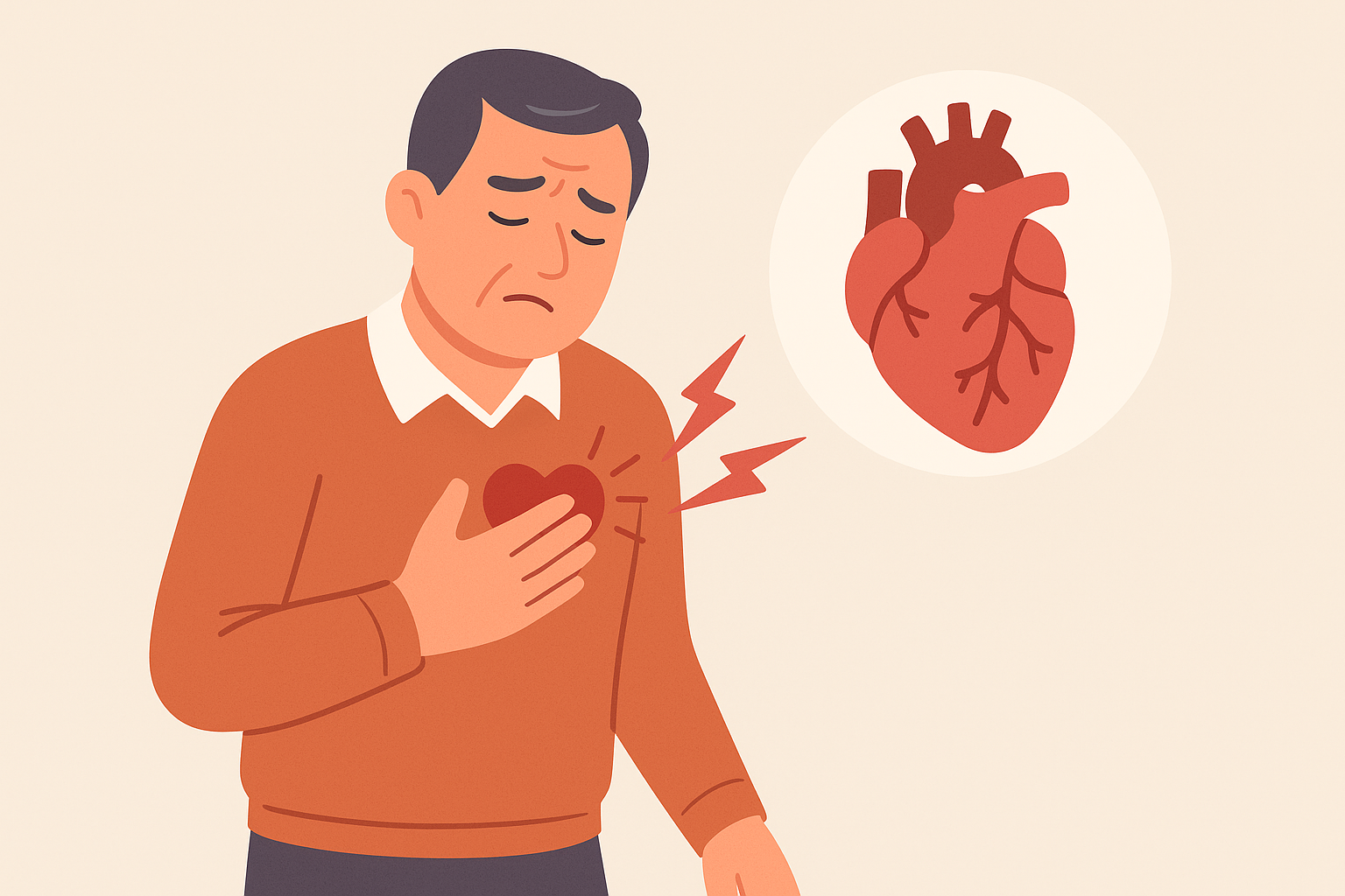 흔히 “가슴이 쪼이는 느낌”, “어깨·팔로 뻗는 통증”으로 표현되며, 운동 중이나 스트레스 상황에서 악화됩니다.
