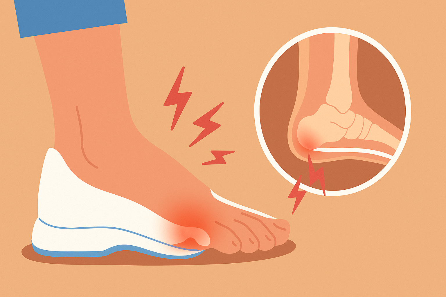 족저근막염의 대표적인 증상은 발뒤꿈치 안쪽의 날카로운 통증입니다. 특히 아침에 일어나 첫 발을 디딜 때나, 장시간 앉아 있다가 일어난 후 통증이 극심하게 나타납니다.