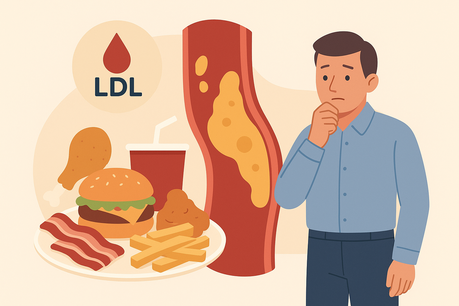 특히 육류 섭취가 많고 채소 섭취가 적은 식습관은 나쁜 콜레스테롤(LDL)을 증가시킵니다.